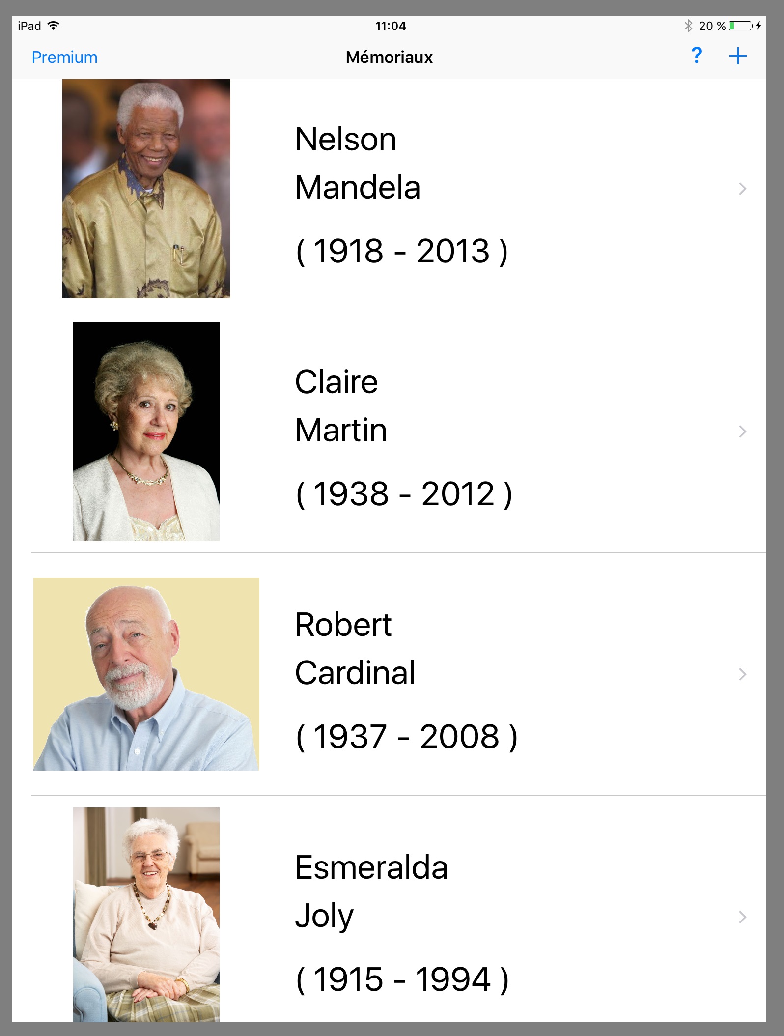 Pour avoir plus d’un mémorial, la commande d’achat intégrée vous permet d’acquérir la version Premium de l’application - Aide en ligne accessible à partir de l’application